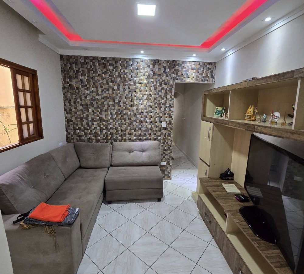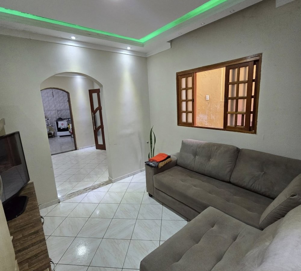 Casa Térrea com 2 Dormitórios, sala, coz, área com churrasqueira e garagem