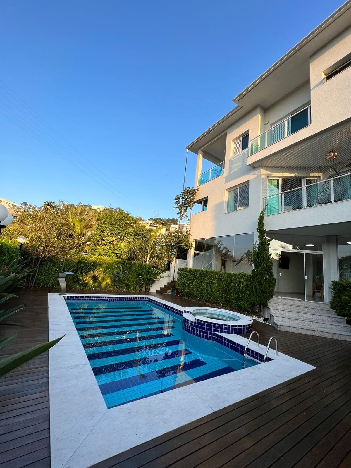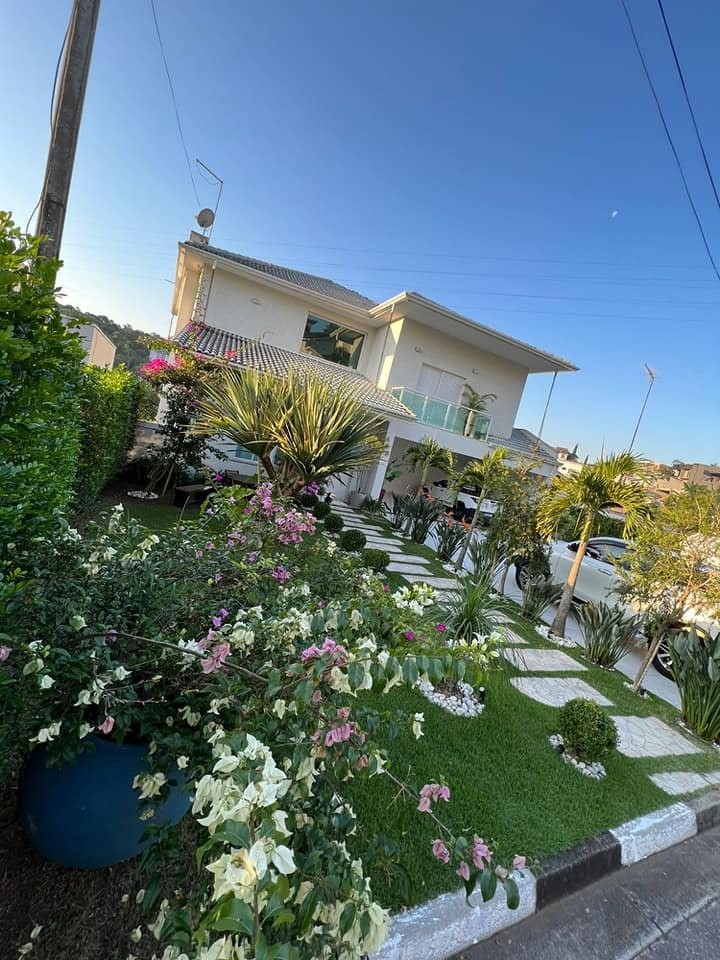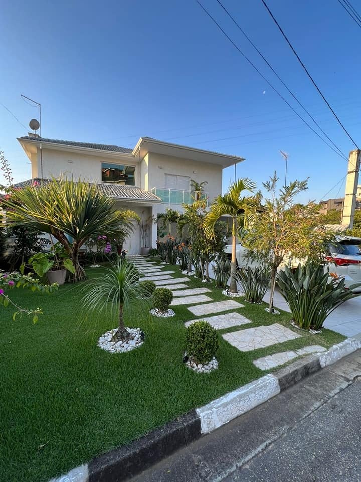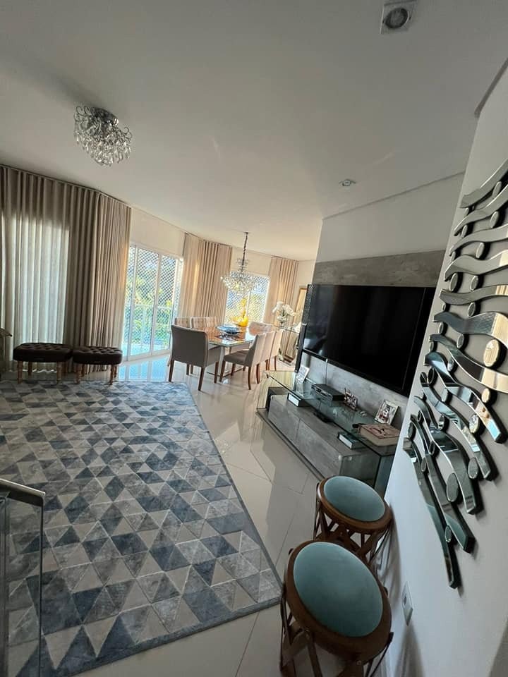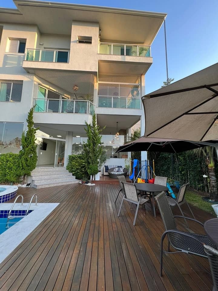 Venda: Sobrado mobiliado com 5 suítes c/sacadas, sala de jantar, sala, salão de jogos, churrasqueira, ôfuro integrado com a piscina, sala de lareira e placas solares